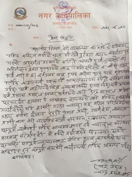 ठाँटी बजार स्थित गएको पहिरोमा दुख व्यक्त गर्दै जाजरकोट बासीहरुमा सतर्कता अपनाउन नगर प्रमुखबाट जारी भएको प्रेश विज्ञप्ती