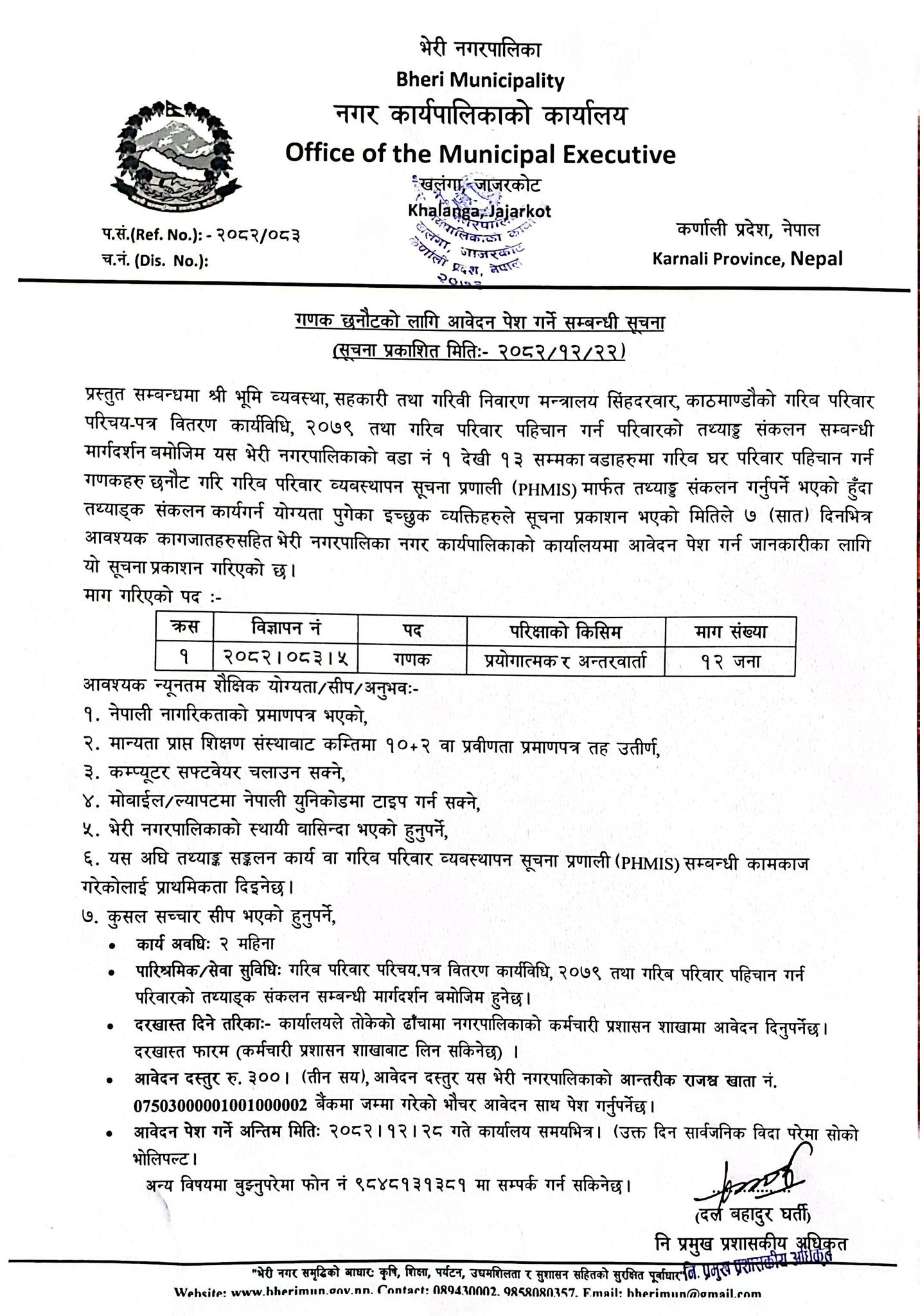 Home » गणक छनौटको लागि आवेदन पेश गर्ने सम्बन्धी सूचना।