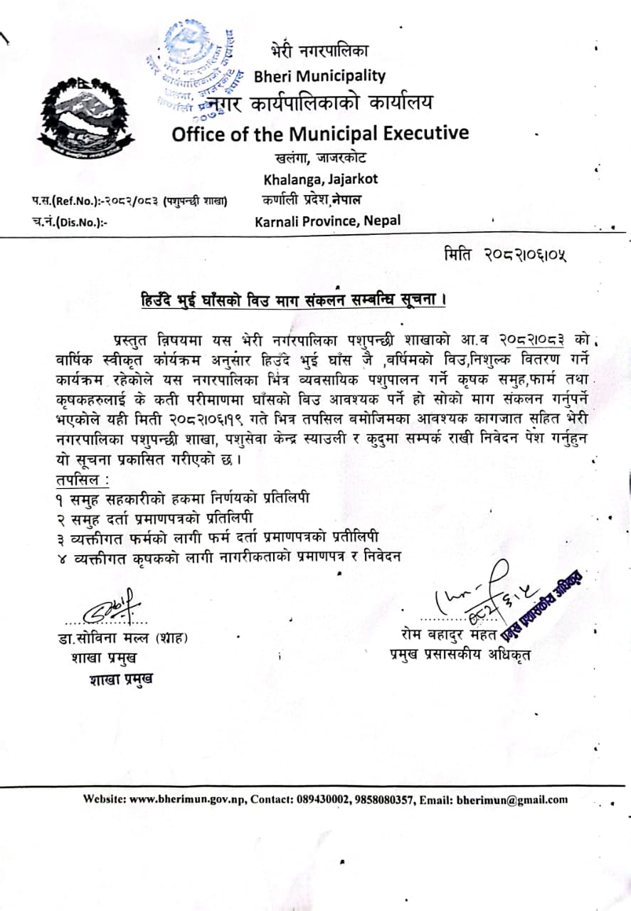 Home » हिउँदे भुई घाँसको विउ माग संकलन सम्बन्धि सूचना।