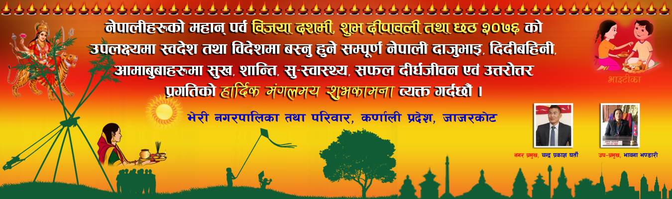 भेरी नगरपालिकाको विकास, समृद्धि र सुशासनका लागि नागरिकको सहयोग र सहभागिता अपरिहार्य हुन्छ । सेवा प्रवाह र विकास निर्माणका काममा यहाँको सल्लाहसुझाव र सहयोगको अपेक्षा गरिएको छ । भेरी नगरपालिका भित्र कुनै गुनासा ,सिकायत उजुरी,सल्लाह,सुझाव र सहयोगको लागि सम्पर्क नं. ९८५८०७७४७७, ९८५८०६२१११ र ९८४८०९६९८५ मा फोन गर्नुहुन अनुरोध छ ।