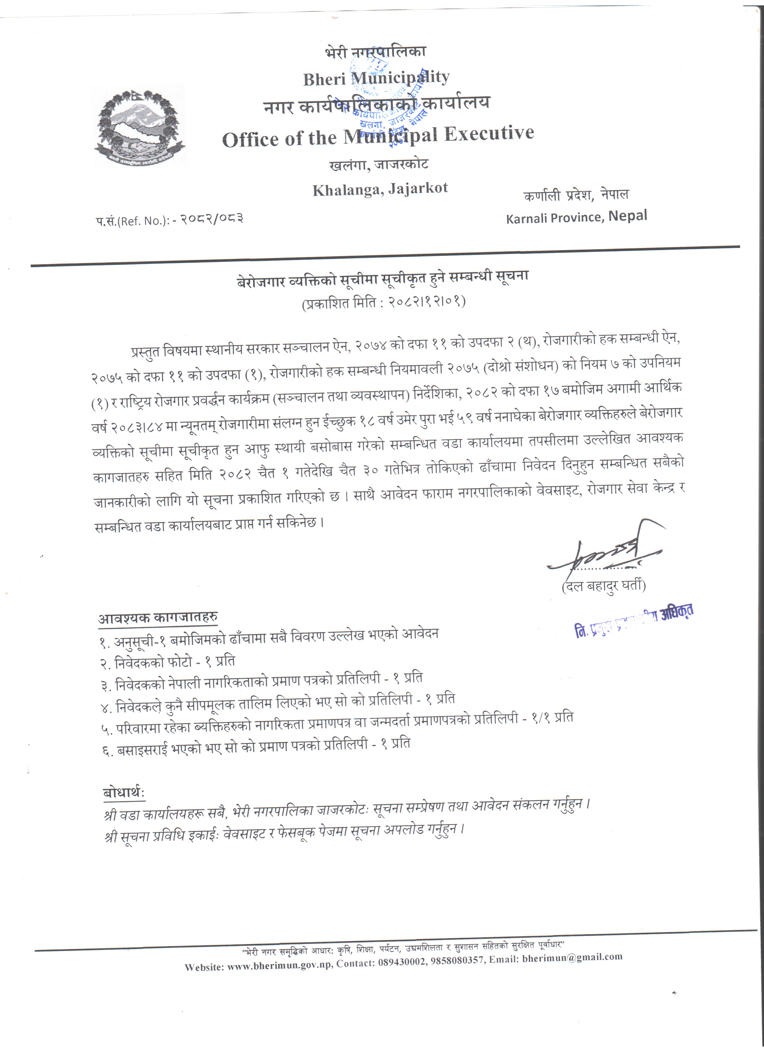 बेरोजगार व्यक्तिको सूचीमा सूचीकृत हुने सम्बन्धी सूचना ।