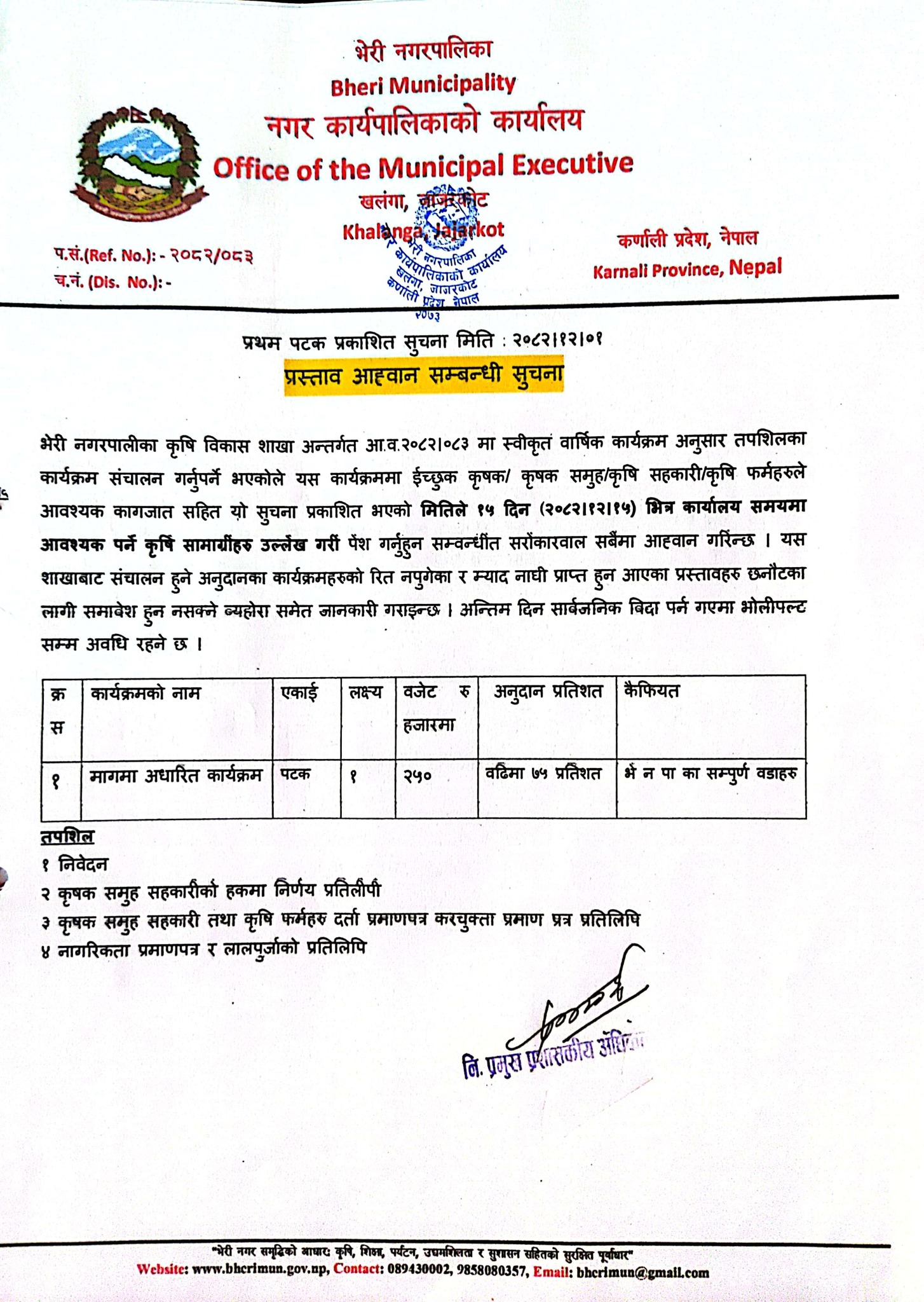 Home » मागमा आधारित कार्यक्रम संचालनका लागि प्रस्ताव पेश गर्ने सम्बन्धिको सूचना(कृषि विकास शाखा)