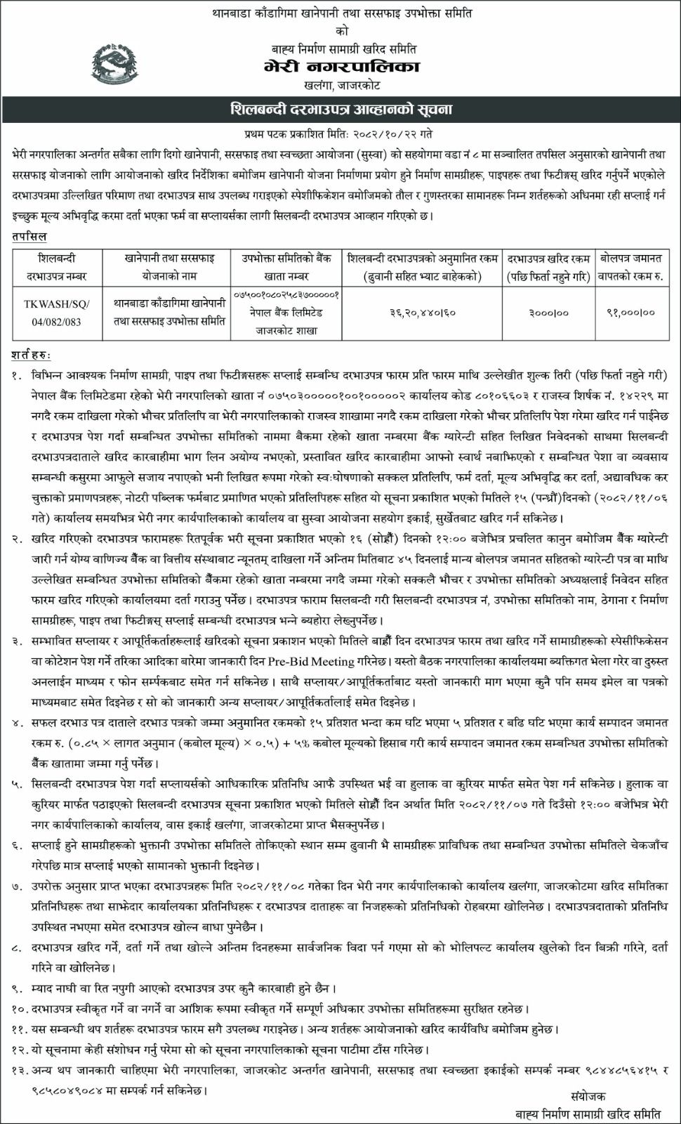 Home » शिलबन्दी दरभाउपत्र आव्हानको सूचना। (SUSWA)