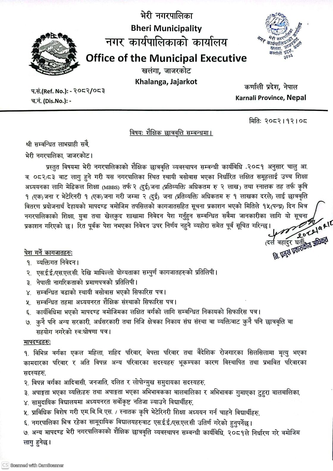 Home » शैक्षिक छात्रवृत्ति सम्बन्धमा।